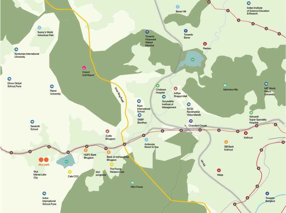 With thoughtfully designed 2 & 3 bhk homes that offer more than just life Skyi park is tucked away near Manas Lake, surrounded by lush greenery, yet close to everything you need. Located just minutes from Bavdhan, you get the best of both worlds—peaceful lake views and easy access to schools, offices, hospitals, and daily essentials.